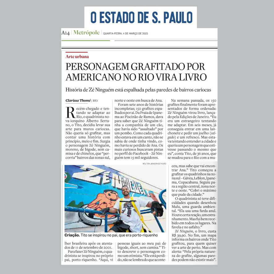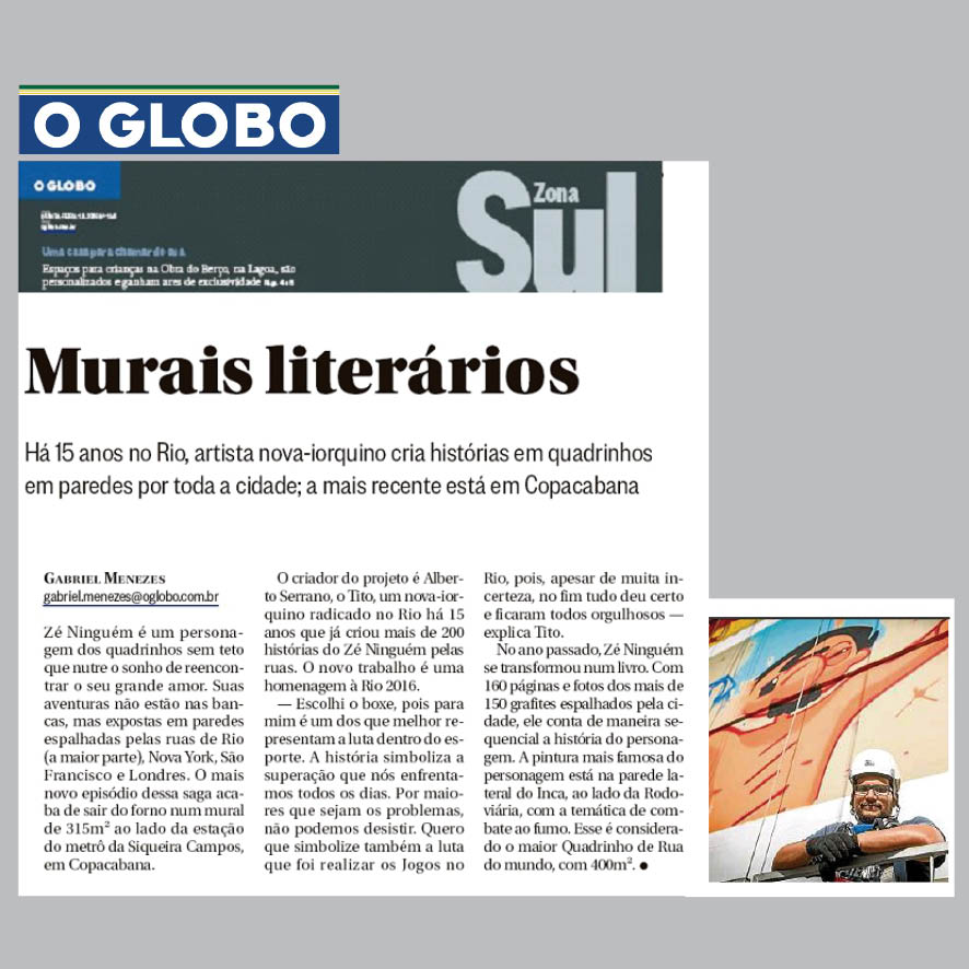 The most popular being the Ze Ninguem graphic novel, a collection of the comics murals I’ve created in Rio de Janeiro.