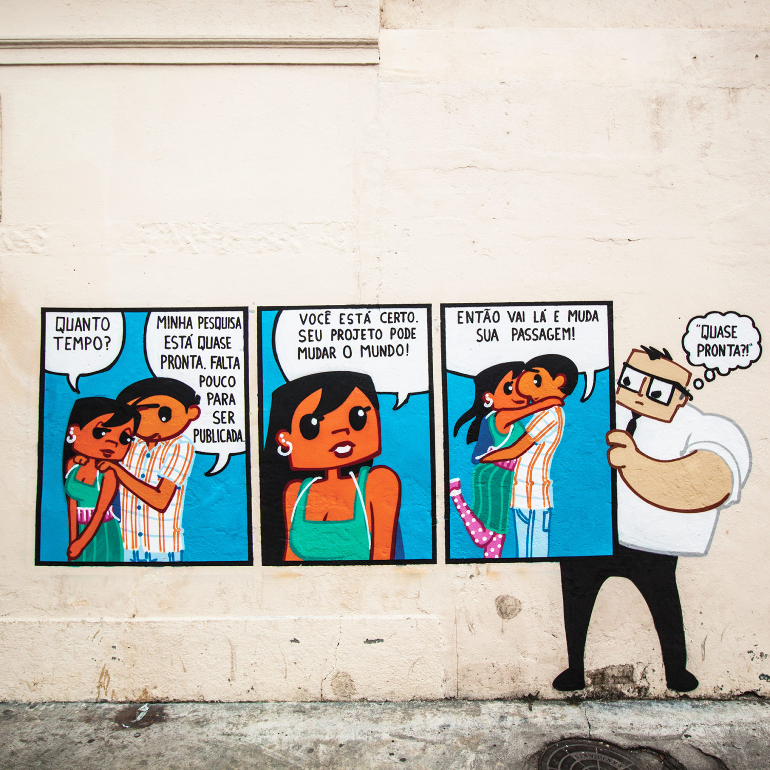 The most popular being the Ze Ninguem graphic novel, a collection of the comics murals I’ve created in Rio de Janeiro.